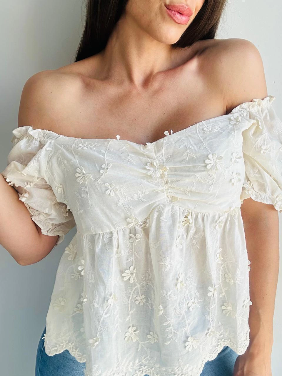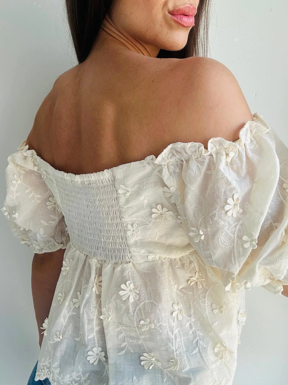 La Blusa Vivian combina romanticismo y elegancia en una prenda única. Confeccionada con delicado bordado de flores, su escote en forma de corazón y mangas princesa crean una silueta súper femenina. El corte debajo del busto y la doble tela en esa zona aportan estructura, mientras que el elástico en la espalda le da un calce cómodo y favorecedor.