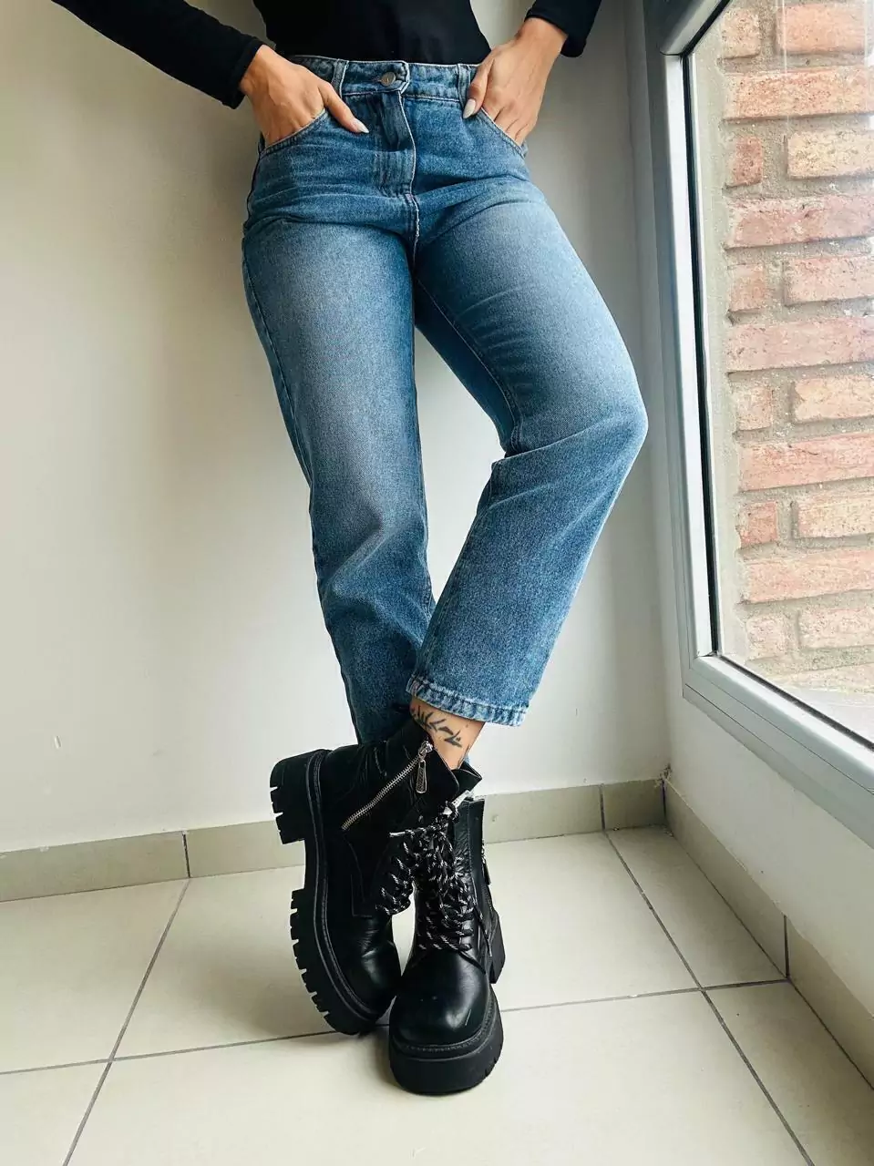 Jean Mom Rígido es ese básico infaltable. De tiro alto, color azul con lavado desgastado y sin elastano, aporta estructura y estilo a tus outfits diarios. Su corte clásico realza la figura y suma un aire vintage y canchero que nunca pasa de moda.