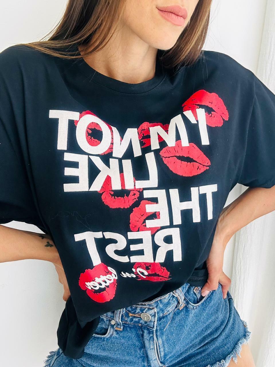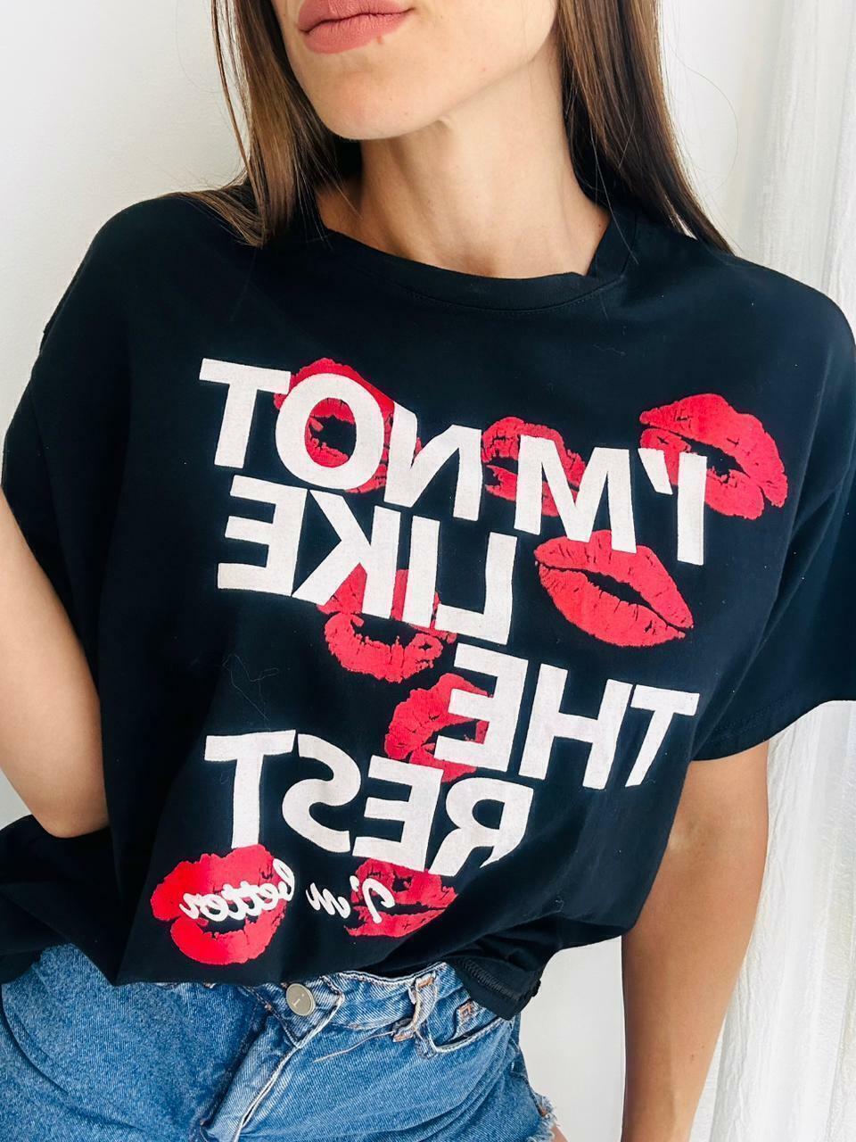 La Remera Sofi, confeccionada en jersey, es la combinación perfecta de comodidad y estilo. Su diseño con estampa de frases y besos le aporta un toque moderno y divertido, ideal para quienes buscan una prenda con personalidad. Disponible en color blanco y negro, es un básico versátil que se adapta a cualquier look.